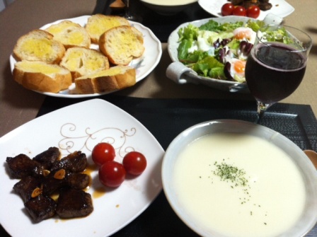 誕生日の晩飯。ポタージュが濃厚だった。