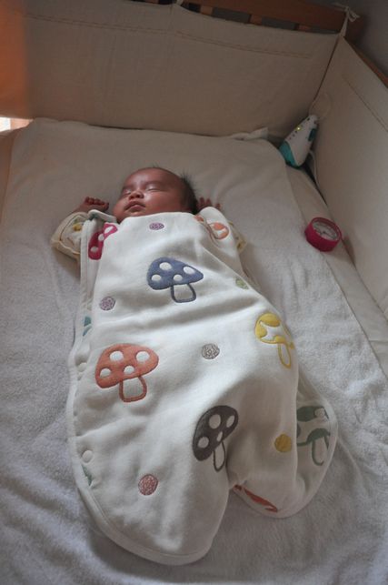 これはこどもが手足をバタバタさせて、無駄に落ち着きがなく、かつ自分が眠りたい時の奥の手として使うようにしているが、そのミノムシ状態が大変可愛らしく、本人も子宮にいた時と同じような感覚になるらしく、心地よさげである。ただ、一気にでかくなってしまったため、入れるのに苦労するようになってきた。
